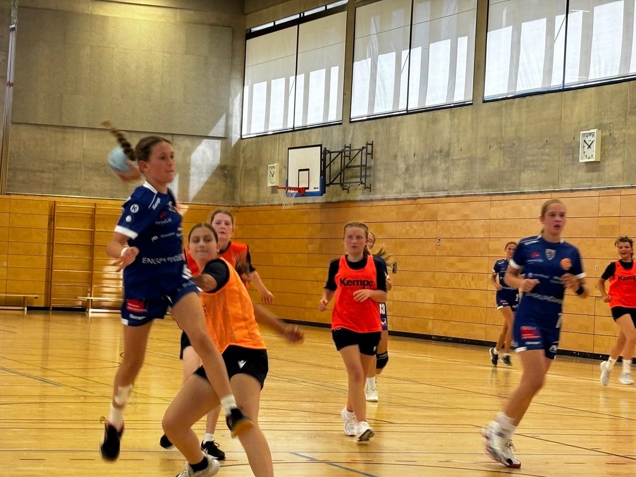 Da die Quali leider nicht gut gelaufen ist, treten wir in der Bezirksklasse an und am Sonntag stand das Duell mit einem der drei Teams an., die außer Konkurrenz spielen Und es kam wie befürchtet. Jahn II wurde sehr deutlich mit 41:1 geschlagen. Die Einsatzzeit wurde gleichmäßig auf alle verteilt. Tatsächlich haben wird das erste Mal einen Blockwechsel probiert, bei dem nach der Hälfte die gesamte Mannschaft getauscht wurde. Es konnten sich auch fast alle Mädels in die Torschützenliste eintragen.