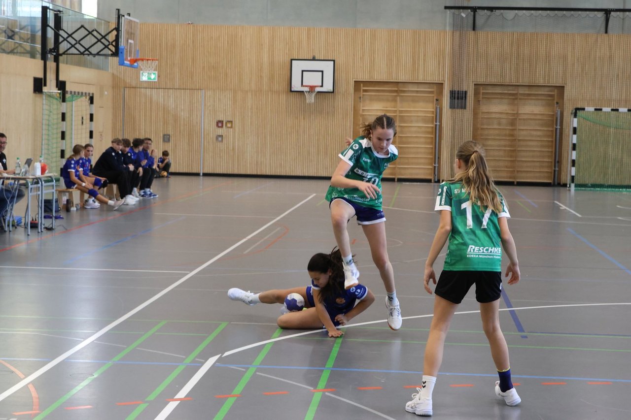 Die weibliche D-Jugend des TSV Trudering hat am vergangenen Sonntag einen knappen, aber verdienten Sieg gegen den SV Laim errungen. Das Spiel war von Beginn an hart umkämpft. Zwar gingen die Truderinger Mädchen mit zwei Treffern Vorsprung in die Halbzeit, doch gelang es ihnen nie, sich deutlich abzusetzen. Unkonzentriertes Passspiel nach vorne und riskante Spiele an den Kreis ermöglichten dem Gegner immer wieder den Anschluss. Drei Minuten vor Schluss lagen die Truderingerinnen sogar mit zwei Toren zurück. Doch mit einer konzentrierten Schlussphase, in der sie vier zu null Tore erzielten, sicherten sie sich letztendlich den verdienten Sieg.